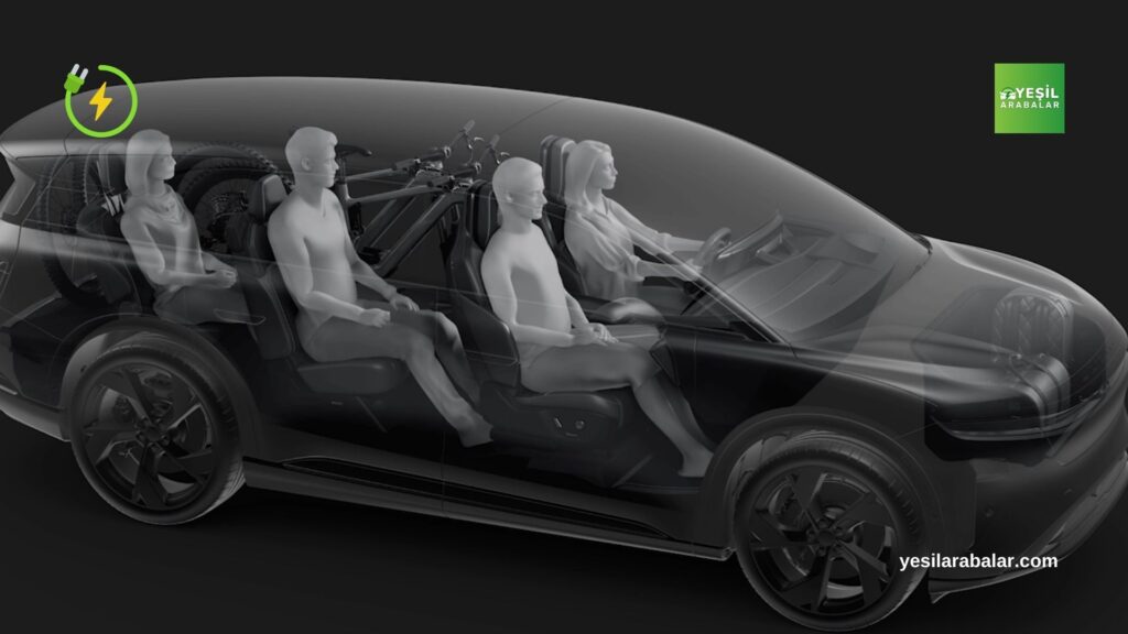 Lucid, Gravity modelinde 720 Km’ye kadar tahmini menzili var. Ayrıca 340 litreye kadar bagaj hacmi ve 7 yetişkine kadar oturma alanı ile kalabalık yolculuklar için ideal bir seçenek sağlıyor. İkinci ve üçüncü koltuk sıralarının tamamen katlanabilmesi sayesinde taşıma kapasitesi rahatça artıyor.
